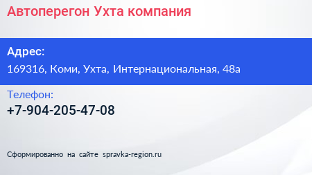 Автоперегон Ухта, компания по адресу 169316, Коми, Ухта, Интернациональная, 48а в дальнейшем Организация, размещена в следующих категориях: