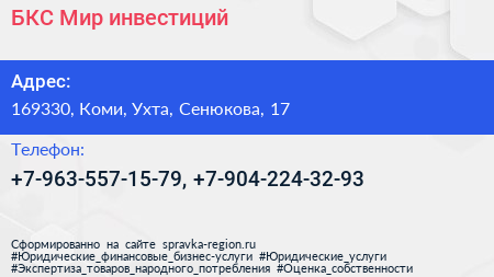 БКС Мир инвестиций по адресу 169330, Коми, Ухта, Сенюкова, 17 в дальнейшем Организация, размещена в следующих категориях: