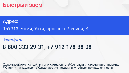 Быстрый заём по адресу 169313, Коми, Ухта, проспект Ленина, 4 в дальнейшем Организация, размещена в следующих категориях: