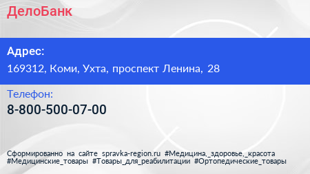 ДелоБанк по адресу 169312, Коми, Ухта, проспект Ленина, 28 в дальнейшем Организация, размещена в следующих категориях: