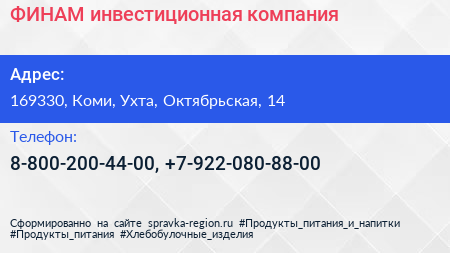 ФИНАМ, инвестиционная компания по адресу 169330, Коми, Ухта, Октябрьская, 14 в дальнейшем Организация, размещена в следующих категориях: