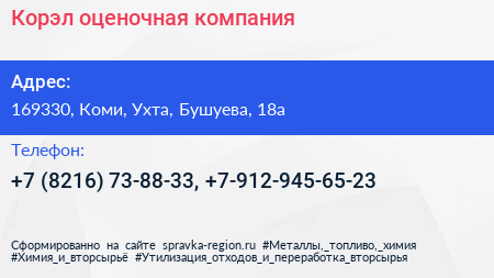 Корэл, оценочная компания по адресу 169330, Коми, Ухта, Бушуева, 18а в дальнейшем Организация, размещена в следующих категориях:
