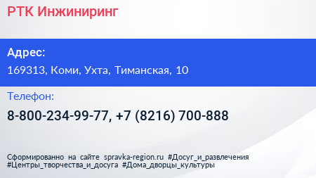РТК-Инжиниринг по адресу 169313, Коми, Ухта, Тиманская, 10 в дальнейшем Организация, размещена в следующих категориях: