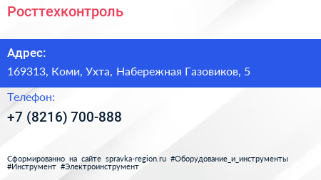Росттехконтроль по адресу 169313, Коми, Ухта, Набережная Газовиков, 5 в дальнейшем Организация, размещена в следующих категориях: