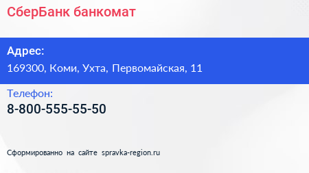 СберБанк, банкомат по адресу 169300, Коми, Ухта, Первомайская, 11 в дальнейшем Организация, размещена в следующих категориях: