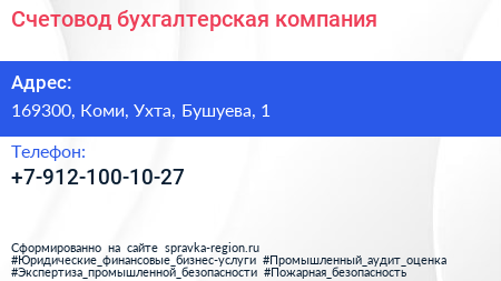 Счетовод, бухгалтерская компания по адресу 169300, Коми, Ухта, Бушуева, 1 в дальнейшем Организация, размещена в следующих категориях:
