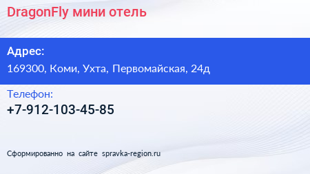 DragonFly, мини-отель по адресу 169300, Коми, Ухта, Первомайская, 24д в дальнейшем Организация, размещена в следующих категориях: