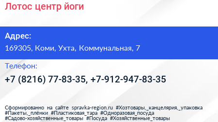 Лотос, центр йоги по адресу 169305, Коми, Ухта, Коммунальная, 7 в дальнейшем Организация, размещена в следующих категориях: