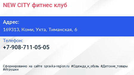 NEW CITY, фитнес-клуб по адресу 169313, Коми, Ухта, Тиманская, 6 в дальнейшем Организация, размещена в следующих категориях: