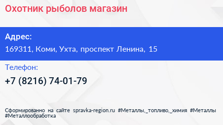 Охотник-рыболов, магазин по адресу 169311, Коми, Ухта, проспект Ленина, 15 в дальнейшем Организация, размещена в следующих категориях: