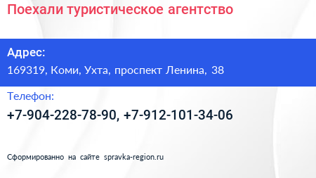 Поехали, туристическое агентство по адресу 169319, Коми, Ухта, проспект Ленина, 38 в дальнейшем Организация, размещена в следующих категориях: