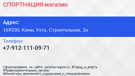 СПОРТНАЦИЯ, магазин по адресу 169330, Коми, Ухта, Строительная, 2а в дальнейшем Организация, размещена в следующих категориях: