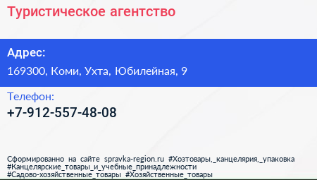 Туристическое агентство по адресу 169300, Коми, Ухта, Юбилейная, 9 в дальнейшем Организация, размещена в следующих категориях: