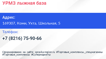 УРМЗ, лыжная база по адресу 169307, Коми, Ухта, Школьная, 5 в дальнейшем Организация, размещена в следующих категориях: