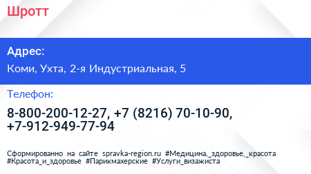 Шротт по адресу Коми, Ухта, 2-я Индустриальная, 5 в дальнейшем Организация, размещена в следующих категориях: