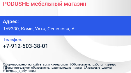 PODUSHE, мебельный магазин по адресу 169330, Коми, Ухта, Сенюкова, 6 в дальнейшем Организация, размещена в следующих категориях: