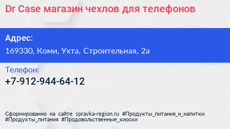 Dr.Case, магазин чехлов для телефонов по адресу 169330, Коми, Ухта, Строительная, 2а в дальнейшем Организация, размещена в следующих категориях: