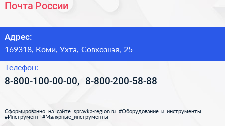 Почта России по адресу 169318, Коми, Ухта, Совхозная, 25 в дальнейшем Организация, размещена в следующих категориях: