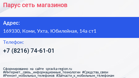 Парус, сеть магазинов по адресу 169330, Коми, Ухта, Юбилейная, 14а ст1 в дальнейшем Организация, размещена в следующих категориях: