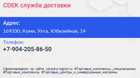 CDEK, служба доставки по адресу 169330, Коми, Ухта, Юбилейная, 14 в дальнейшем Организация, размещена в следующих категориях: