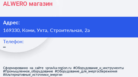 ALWERO, магазин по адресу 169330, Коми, Ухта, Строительная, 2а в дальнейшем Организация, размещена в следующих категориях: