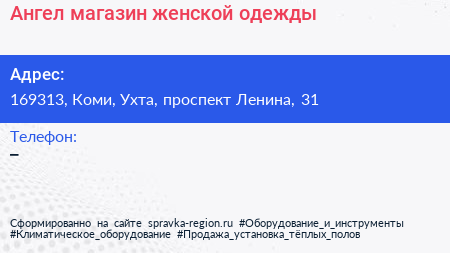 Ангел, магазин женской одежды по адресу 169313, Коми, Ухта, проспект Ленина, 31 в дальнейшем Организация, размещена в следующих категориях: