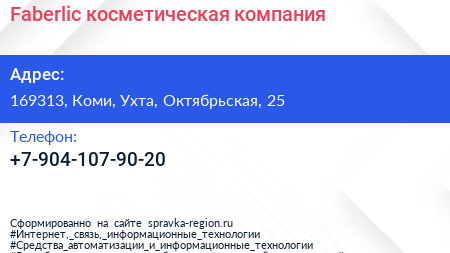 Faberlic, косметическая компания по адресу 169313, Коми, Ухта, Октябрьская, 25 в дальнейшем Организация, размещена в следующих категориях: