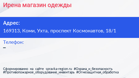Ирена, магазин одежды по адресу 169313, Коми, Ухта, проспект Космонавтов, 18/1 в дальнейшем Организация, размещена в следующих категориях: