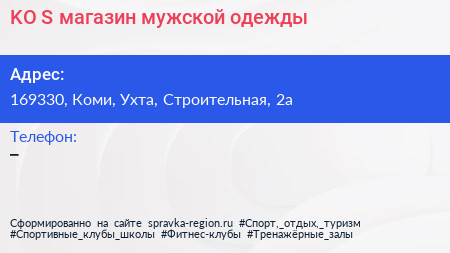 KO`S, магазин мужской одежды по адресу 169330, Коми, Ухта, Строительная, 2а в дальнейшем Организация, размещена в следующих категориях: