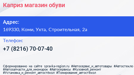 Каприз, магазин обуви по адресу 169330, Коми, Ухта, Строительная, 2а в дальнейшем Организация, размещена в следующих категориях: