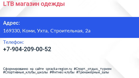 LTB, магазин одежды по адресу 169330, Коми, Ухта, Строительная, 2а в дальнейшем Организация, размещена в следующих категориях: