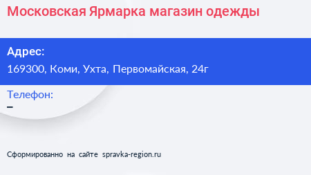 Московская Ярмарка, магазин одежды по адресу 169300, Коми, Ухта, Первомайская, 24г в дальнейшем Организация, размещена в следующих категориях: