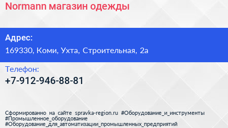 Normann, магазин одежды по адресу 169330, Коми, Ухта, Строительная, 2а в дальнейшем Организация, размещена в следующих категориях: