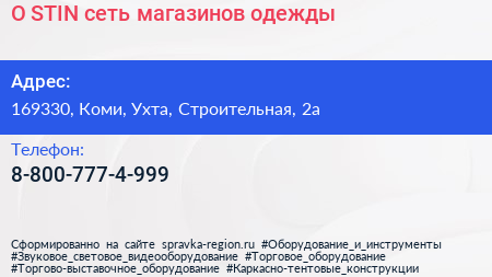 O`STIN, сеть магазинов одежды по адресу 169330, Коми, Ухта, Строительная, 2а в дальнейшем Организация, размещена в следующих категориях: