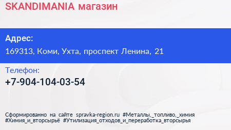 SKANDIMANIA, магазин по адресу 169313, Коми, Ухта, проспект Ленина, 21 в дальнейшем Организация, размещена в следующих категориях: