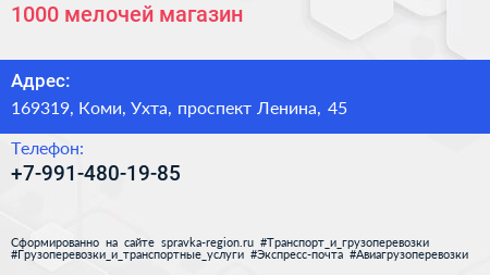 1000 мелочей, магазин по адресу 169319, Коми, Ухта, проспект Ленина, 45 в дальнейшем Организация, размещена в следующих категориях: