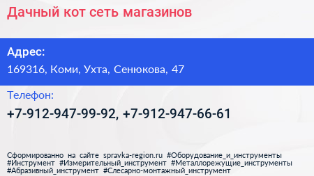 Дачный кот, сеть магазинов по адресу 169316, Коми, Ухта, Сенюкова, 47 в дальнейшем Организация, размещена в следующих категориях: