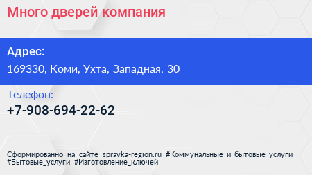 Много дверей, компания по адресу 169330, Коми, Ухта, Западная, 30 в дальнейшем Организация, размещена в следующих категориях: