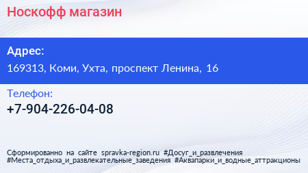 Носкофф, магазин по адресу 169313, Коми, Ухта, проспект Ленина, 16 в дальнейшем Организация, размещена в следующих категориях: