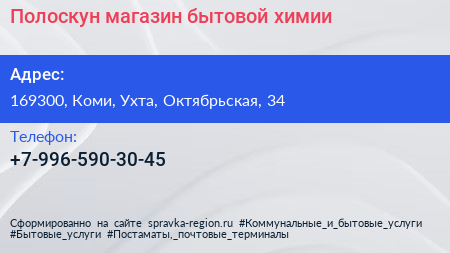 Полоскун, магазин бытовой химии по адресу 169300, Коми, Ухта, Октябрьская, 34 в дальнейшем Организация, размещена в следующих категориях: