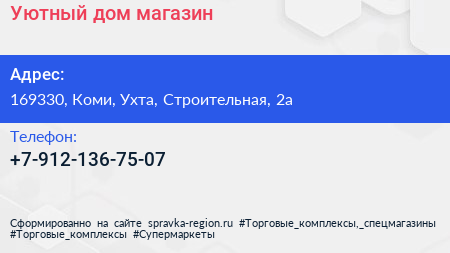 Уютный дом, магазин по адресу 169330, Коми, Ухта, Строительная, 2а в дальнейшем Организация, размещена в следующих категориях: