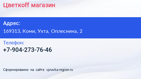 Цветкоff, магазин по адресу 169313, Коми, Ухта, Оплеснина, 2 в дальнейшем Организация, размещена в следующих категориях: