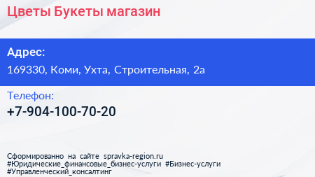Цветы Букеты, магазин по адресу 169330, Коми, Ухта, Строительная, 2а в дальнейшем Организация, размещена в следующих категориях: