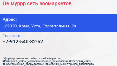 Ле`муррр, сеть зоомаркетов по адресу 169330, Коми, Ухта, Строительная, 2а в дальнейшем Организация, размещена в следующих категориях: