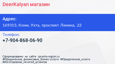 DeerKalyan, магазин по адресу 169313, Коми, Ухта, проспект Ленина, 22 в дальнейшем Организация, размещена в следующих категориях: