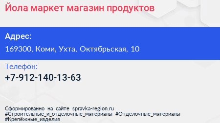 Йола-маркет, магазин продуктов по адресу 169300, Коми, Ухта, Октябрьская, 10 в дальнейшем Организация, размещена в следующих категориях: