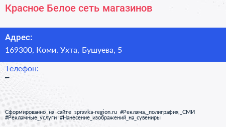 Красное & Белое, сеть магазинов по адресу 169300, Коми, Ухта, Бушуева, 5 в дальнейшем Организация, размещена в следующих категориях: