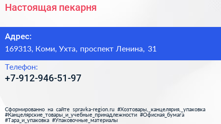 Настоящая пекарня по адресу 169313, Коми, Ухта, проспект Ленина, 31 в дальнейшем Организация, размещена в следующих категориях: