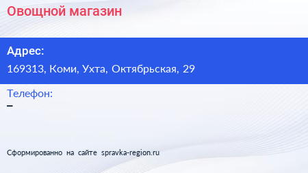Овощной магазин по адресу 169313, Коми, Ухта, Октябрьская, 29 в дальнейшем Организация, размещена в следующих категориях: