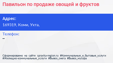 Павильон по продаже овощей и фруктов по адресу 169319, Коми, Ухта, в дальнейшем Организация, размещена в следующих категориях: